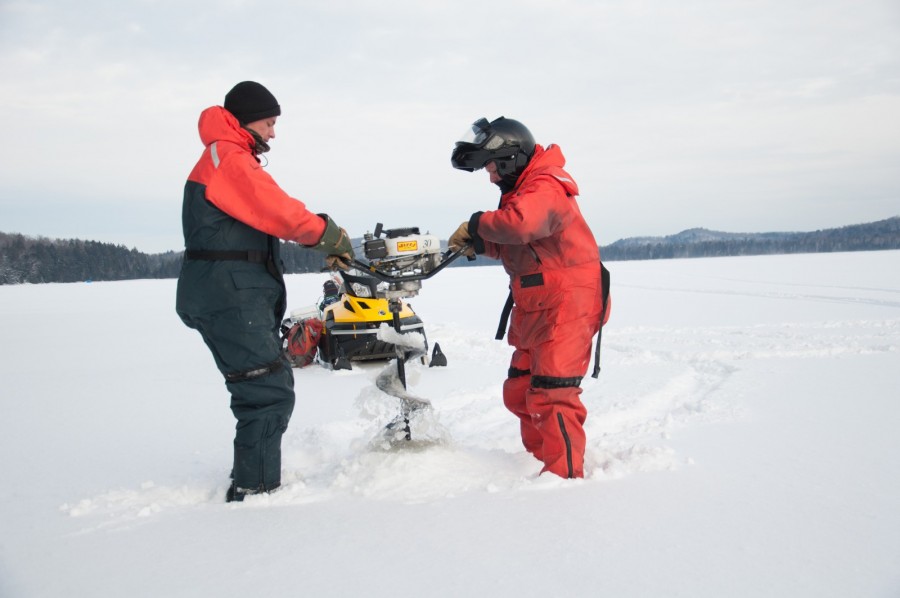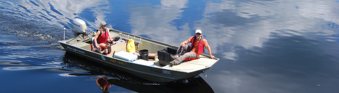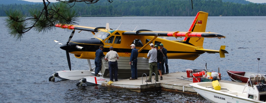 Field Photos Here we share with you some photos from past field seasons. Photo of lakes viewed from the side window odf a float planePushing the dock into place on Lake Opeongo